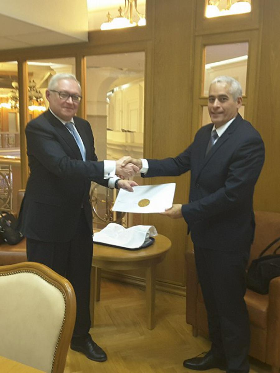 El nuevo embajador de la República de Cuba en la Federación de Rusia, Enrique Orta, entregó al vicecanciller, Serguéi Riabkov, las copias de las cartas credenciales.